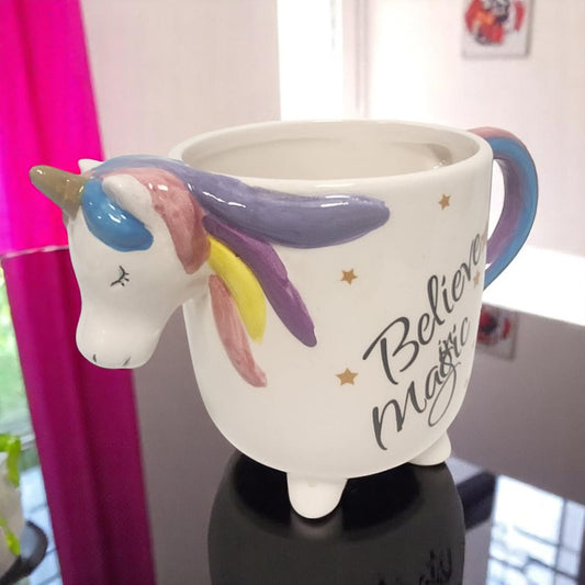 3D Unicorn Mug ‘Believe in Magic’ Ceramic Coffee Cup with Rainbow Handle Cute Gift for Girls & Unicorn Lovers (UK Exclusive)"