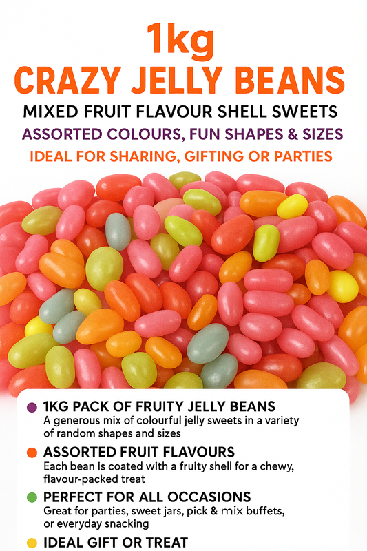 1kg Crazy Jelly Beans – Mixed Fruit Flavour Sweets in Fun Colours & Shapes