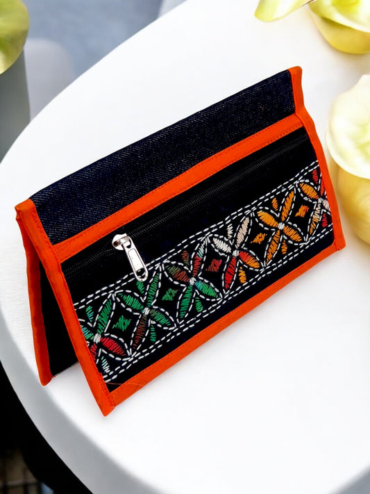 Handmade Embroidered Wallet | Ethnic Cotton Clutch Purse with Zip & Velcro Closure