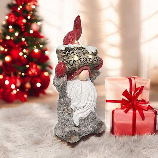 Illuminated LED Christmas Gnome with "Merry Christmas" Sign