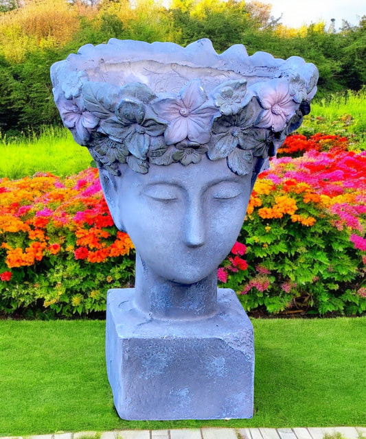 Petal-Shaped Cement Planter Floral Head Sculpture Pot Indoor & Outdoor Decorative Planter