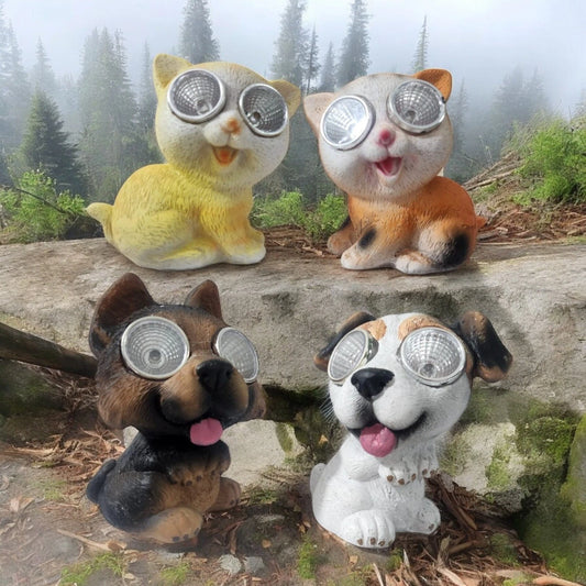 Big Eye Cat & Dog Solar Garden Lights – Resin Animal LED Ornaments for Outdoor Decor (10cm)