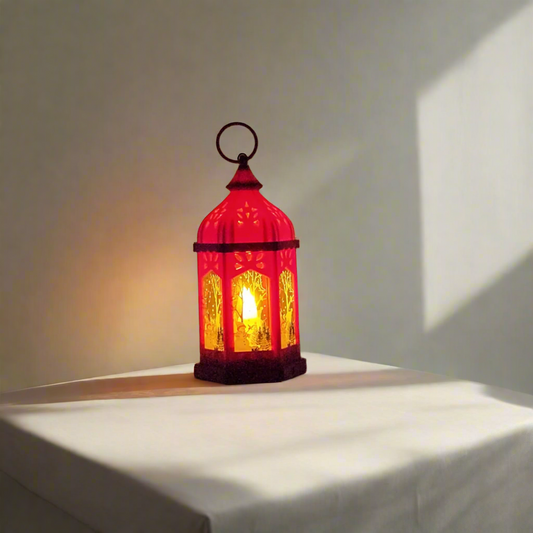 Red LED Lantern with Winter Scene and Snowflakes