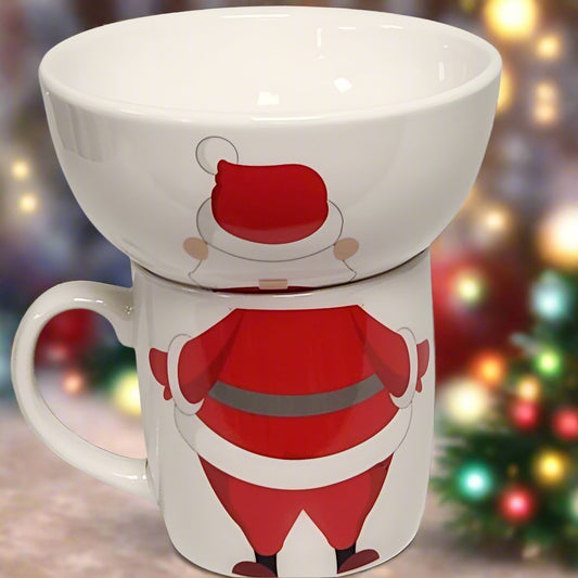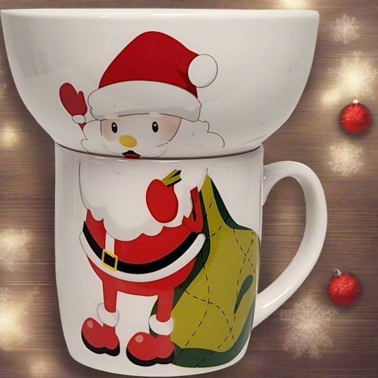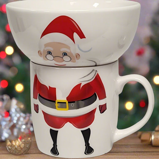 Santa Claus Stacking Bowl and Mug Set with Beard