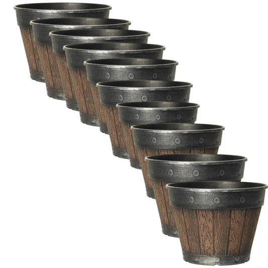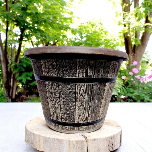 Rustic Barrel-Style Cask Planter – 20cm Round Chestnut Brown | Pack of 5 or 10