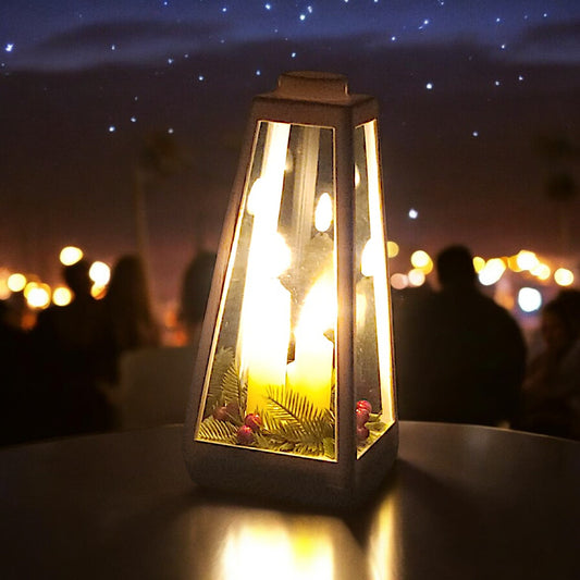 Rustic Farmhouse Lantern - Wooden Tabletop Lantern with LED Lights, 22x10x10cm