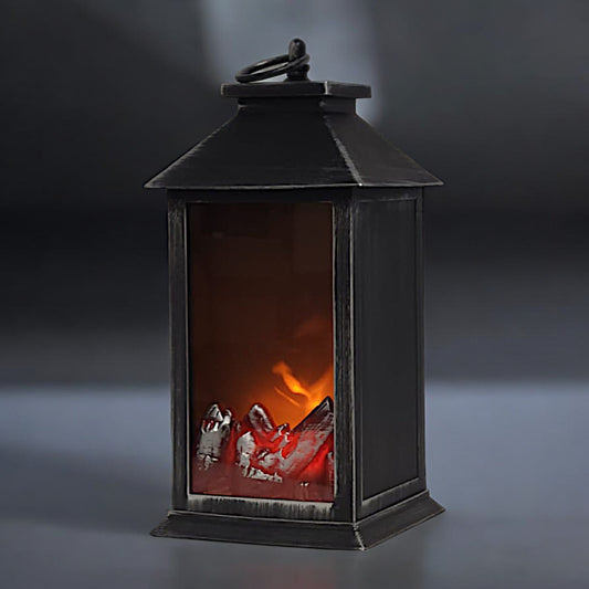 Rustic Metal LED Lantern with Warm Amber Glow - Decorative Home Decor