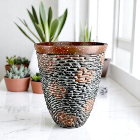 Rustic Stone Look Planter 45.6cm Tall – Brown Resin Pot | 1/2/4 Pack Options