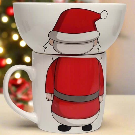 Santa Claus Stacking Bowl and Mug Set with Winking Face