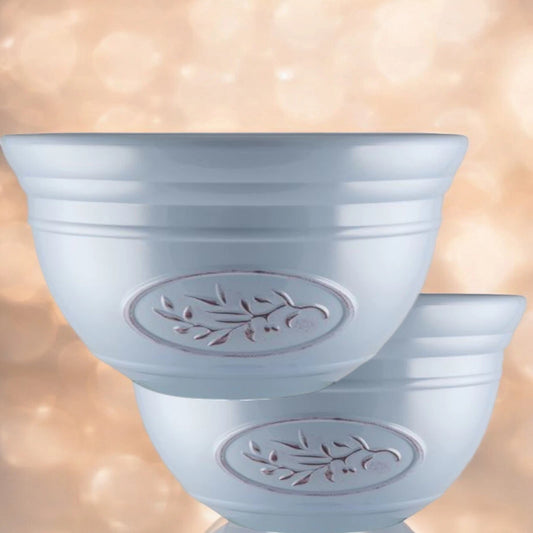 Set of 2 Vintage-Style Grey Plant Pots – Decorative Garden Planters with Embossed Olive Branch Design