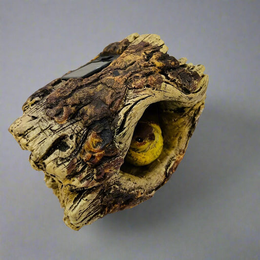 Solar-Powered Tree Trunk with Birdhouse and LED Light