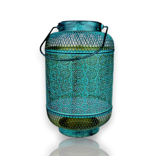 Solar Metal Lantern Green 26cm – Outdoor Garden Hanging Light