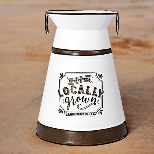 White Metal Milk Can Planter - Farmhouse Decor, Garden Decor