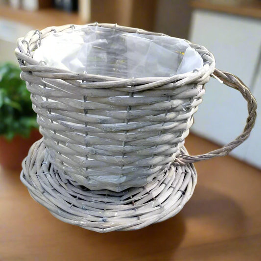 Whimsical Wicker Coffee Cup Planter - A Charming Addition to Your Home