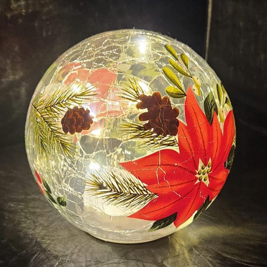 Crackle Glass Christmas Lantern with LED Lights - Rustic, Festive Decor, 15 cm