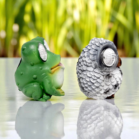 Cute Owl & Frog Solar Garden Lights – Animal LED Eye Ornaments (Pack of 2, 8x9cm)