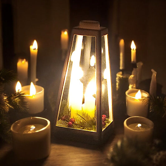 Crackle Glass Christmas Lantern with LED Lights - Rustic, Festive Decor | Divas World