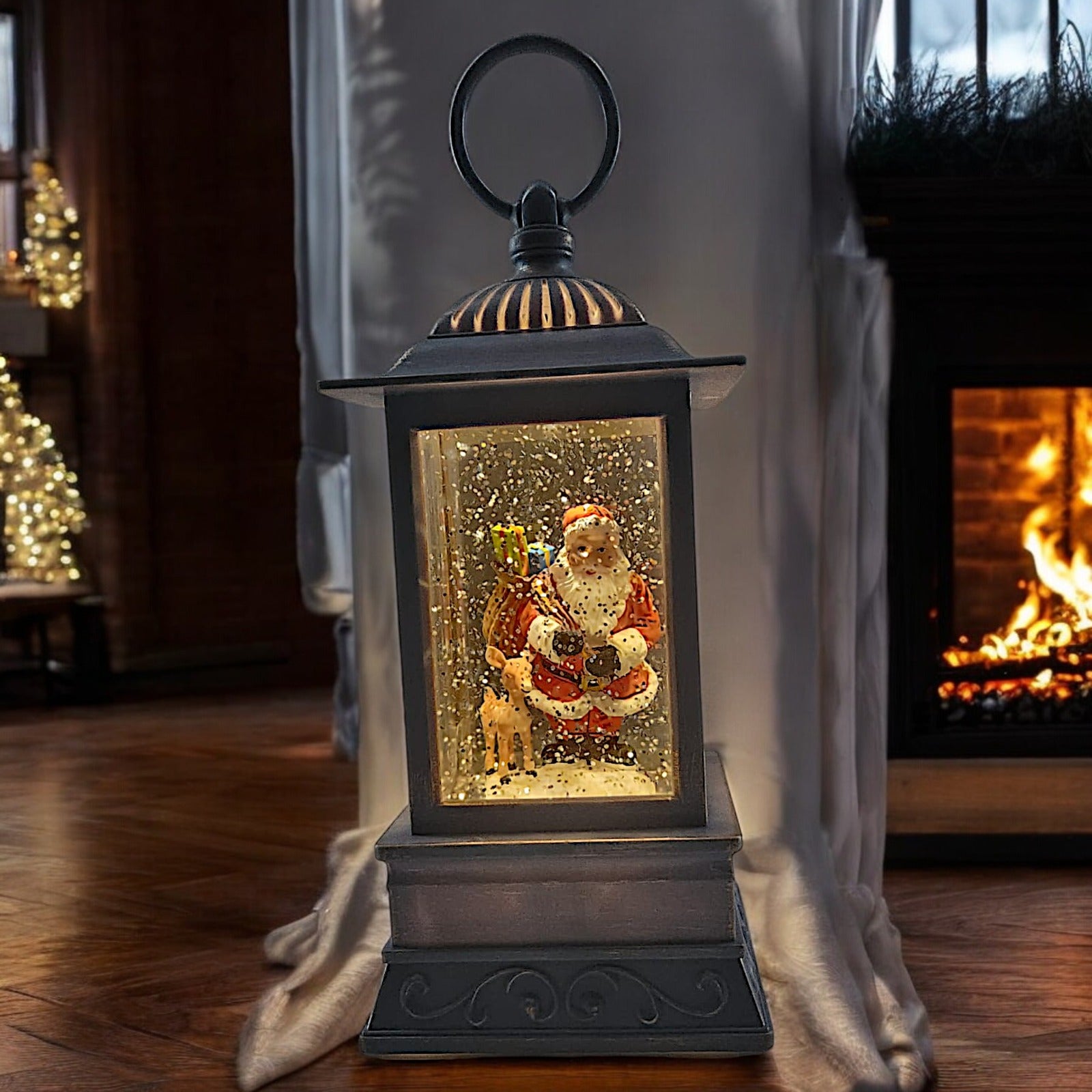 Bring the magic of Christmas into your home with our enchanting Illuminated Santa Lantern. This festive decoration features a detailed lantern design with a shimmering snow scene inside. Watch as Santa Claus and his reindeer travel through the winter wonderland, illuminated by twinkling lights.