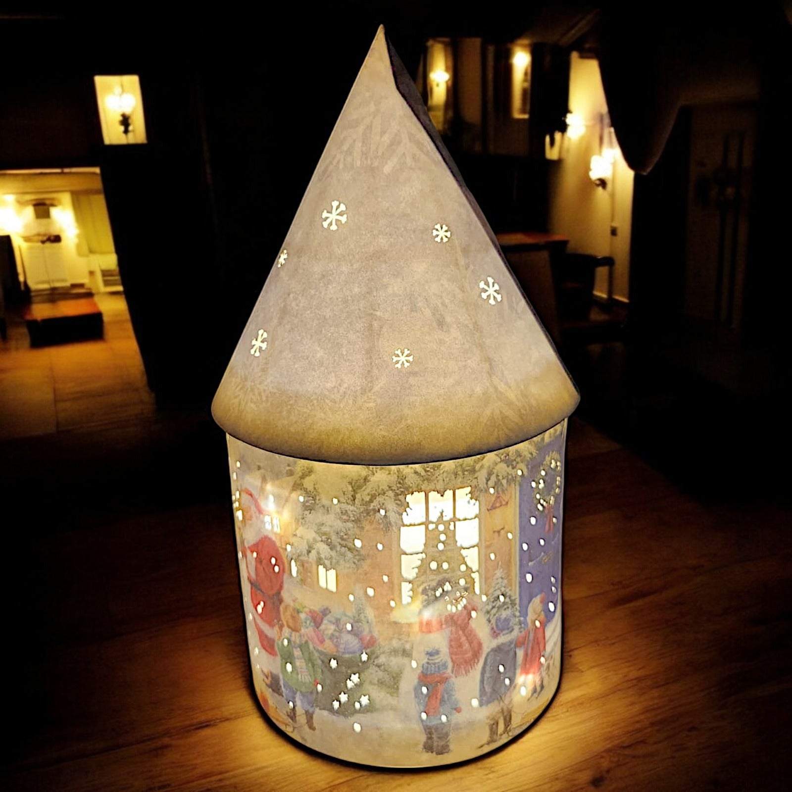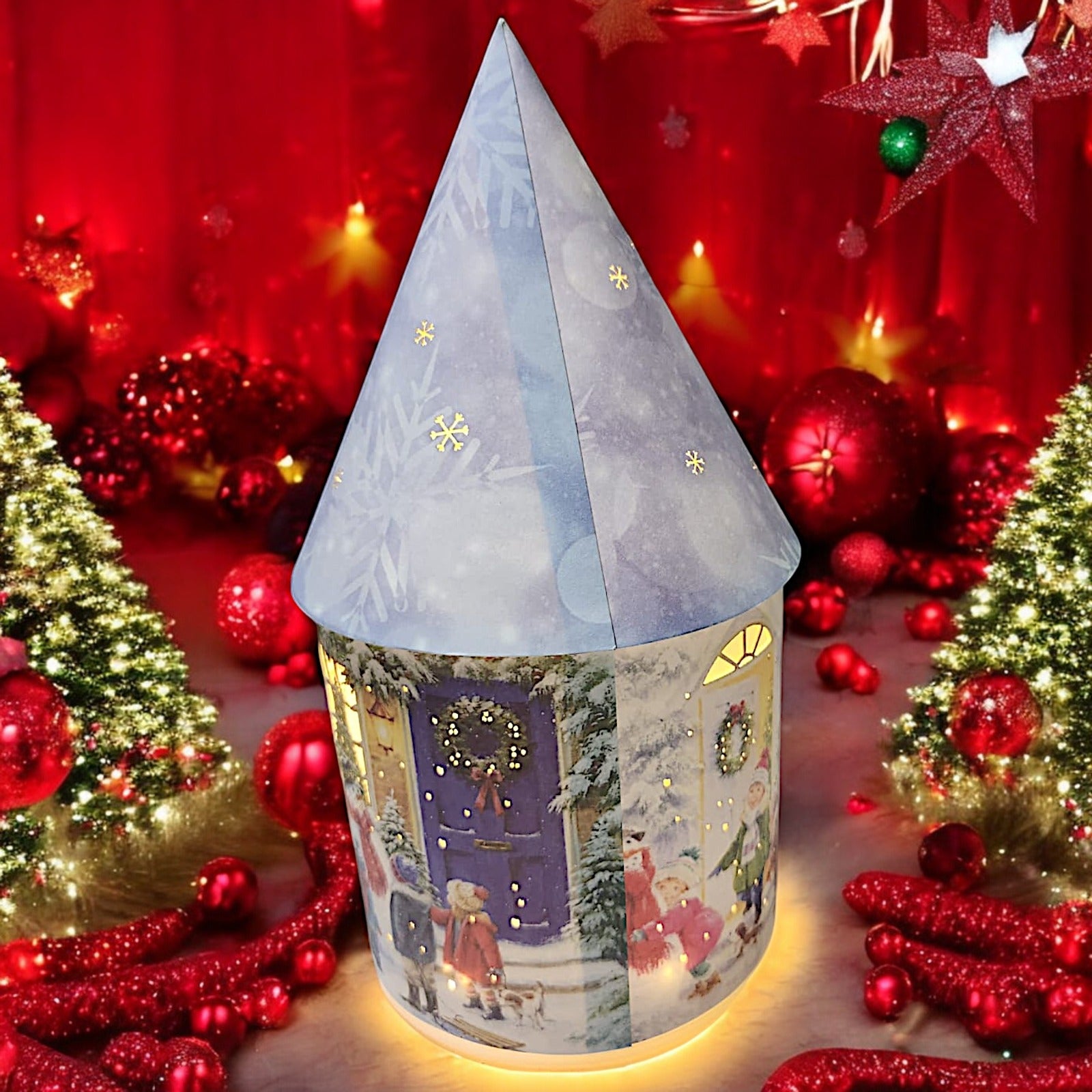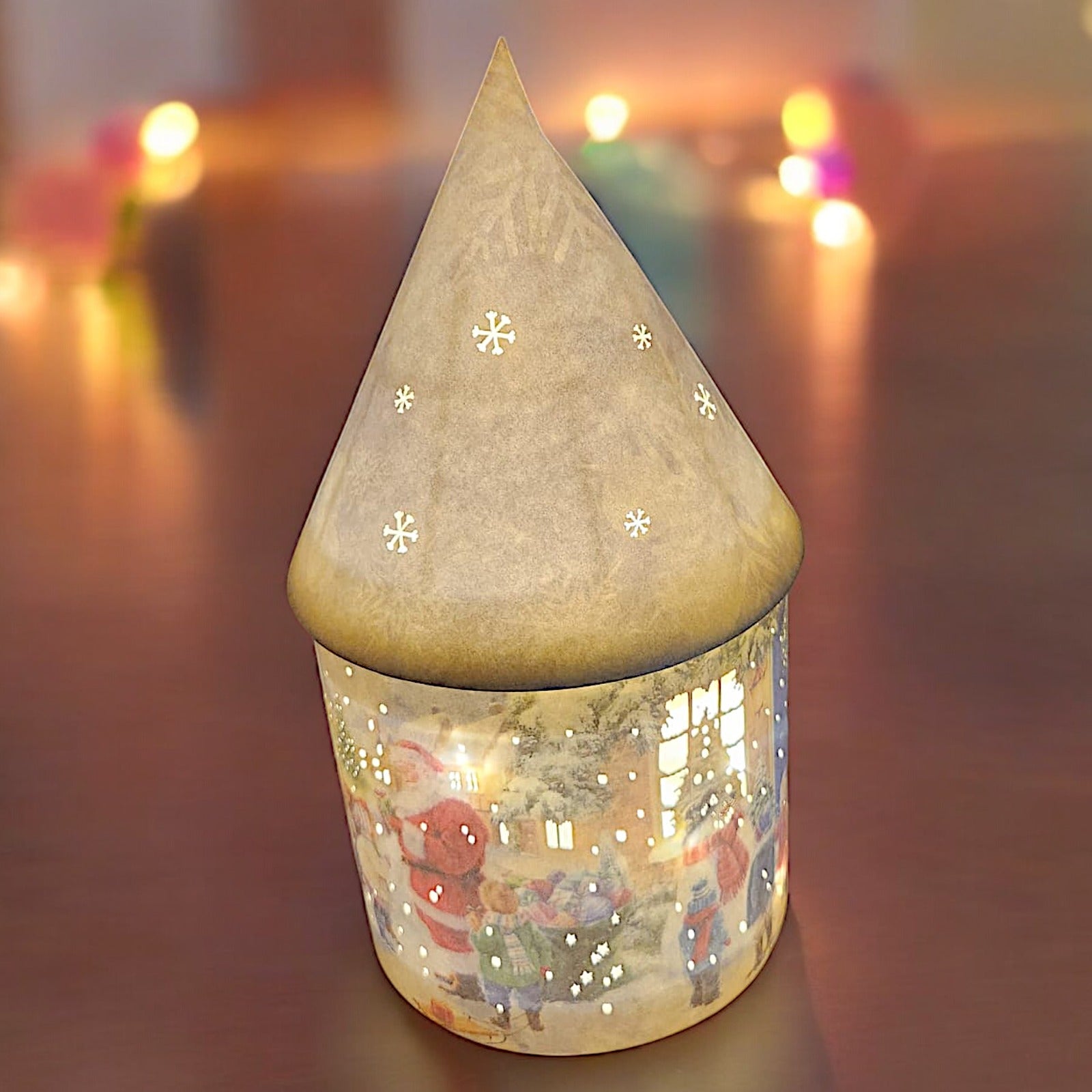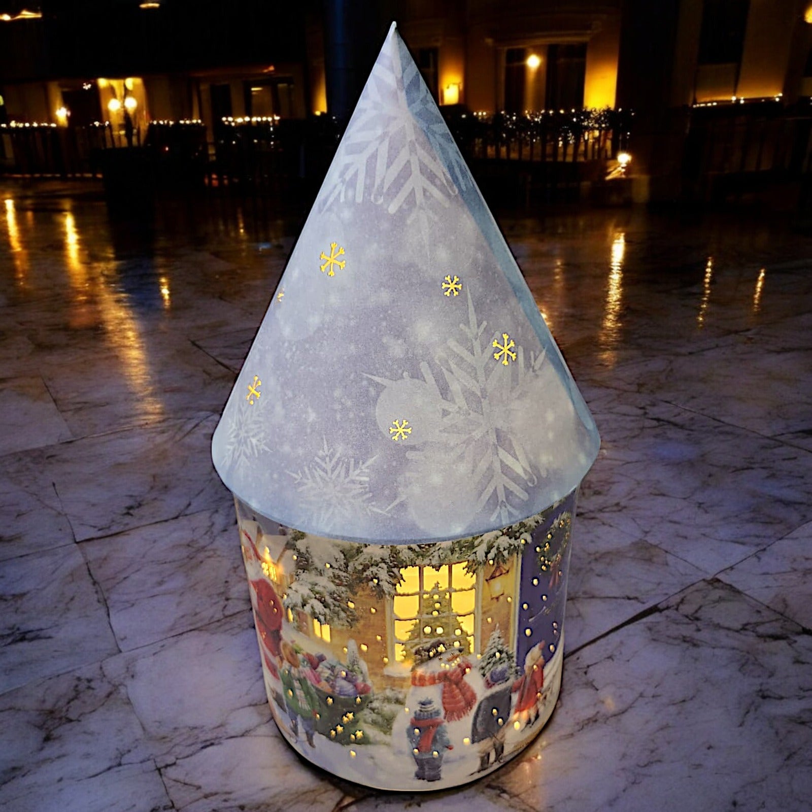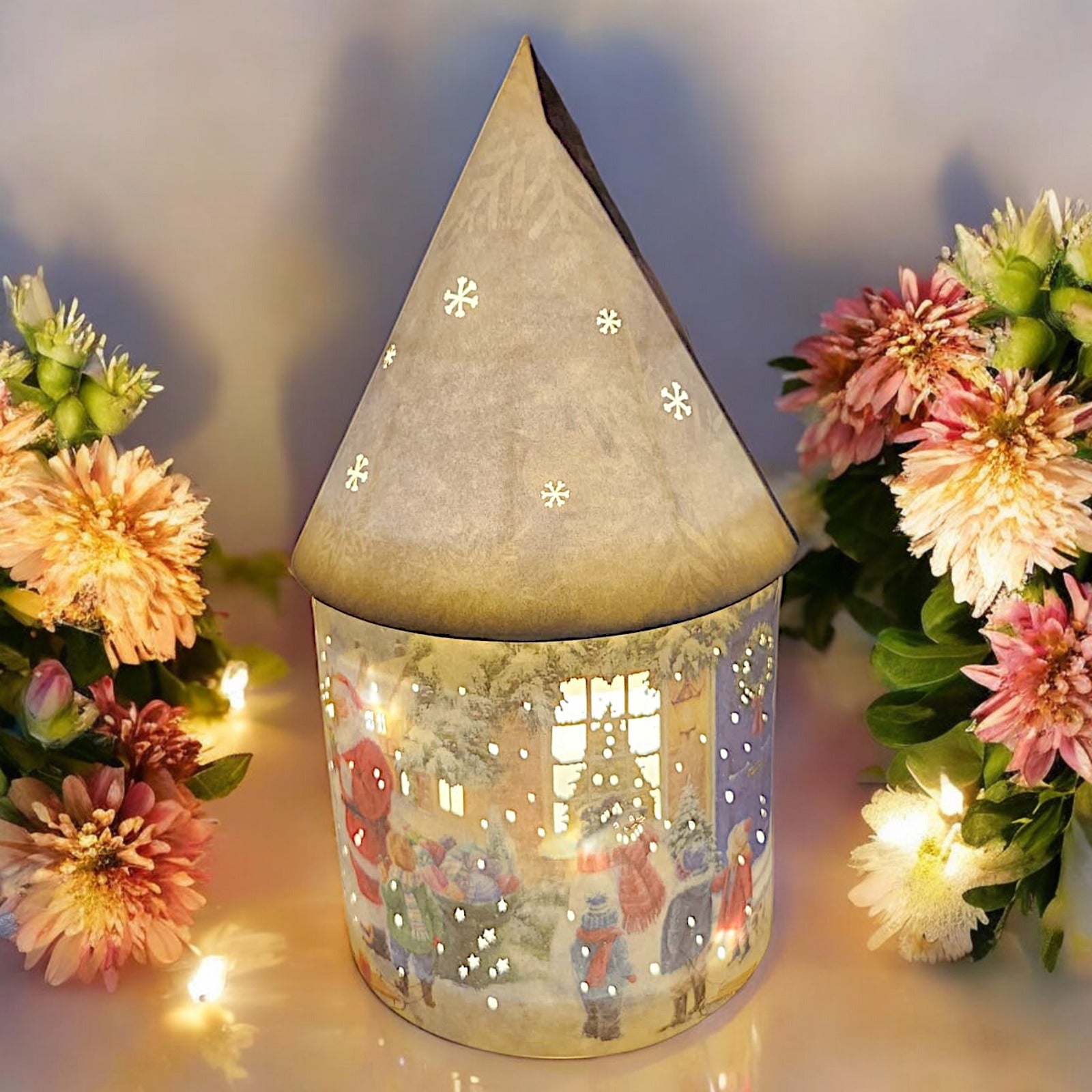 - Create a magical atmosphere: This charming Christmas lantern features a whimsical winter village scene, illuminated by warm, LED lights.