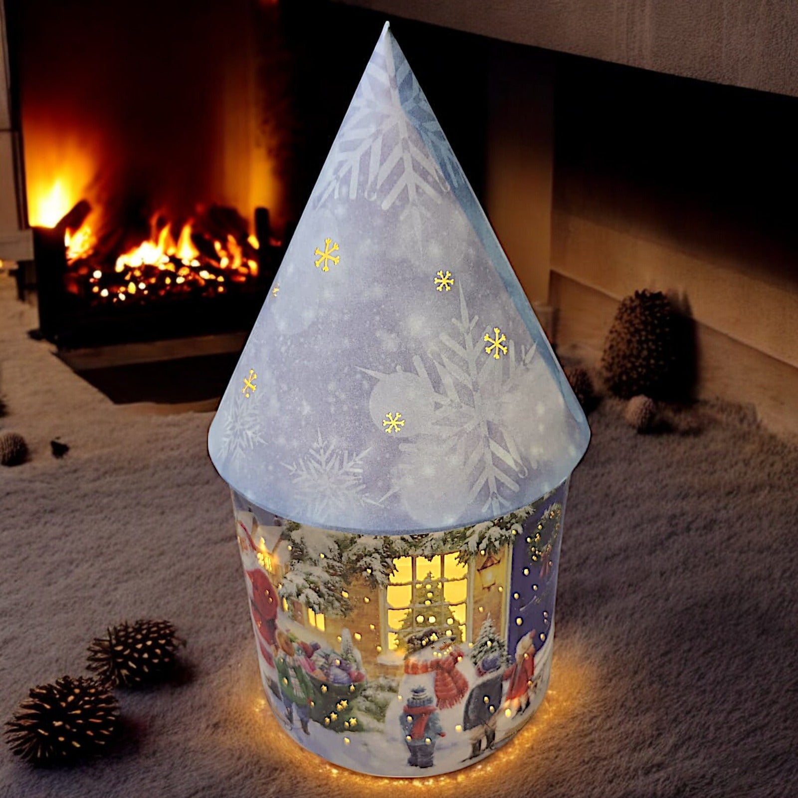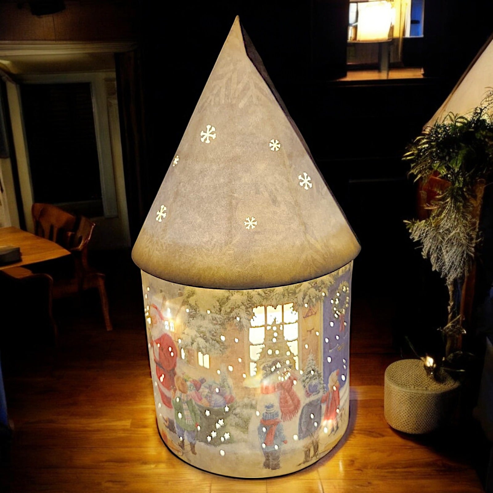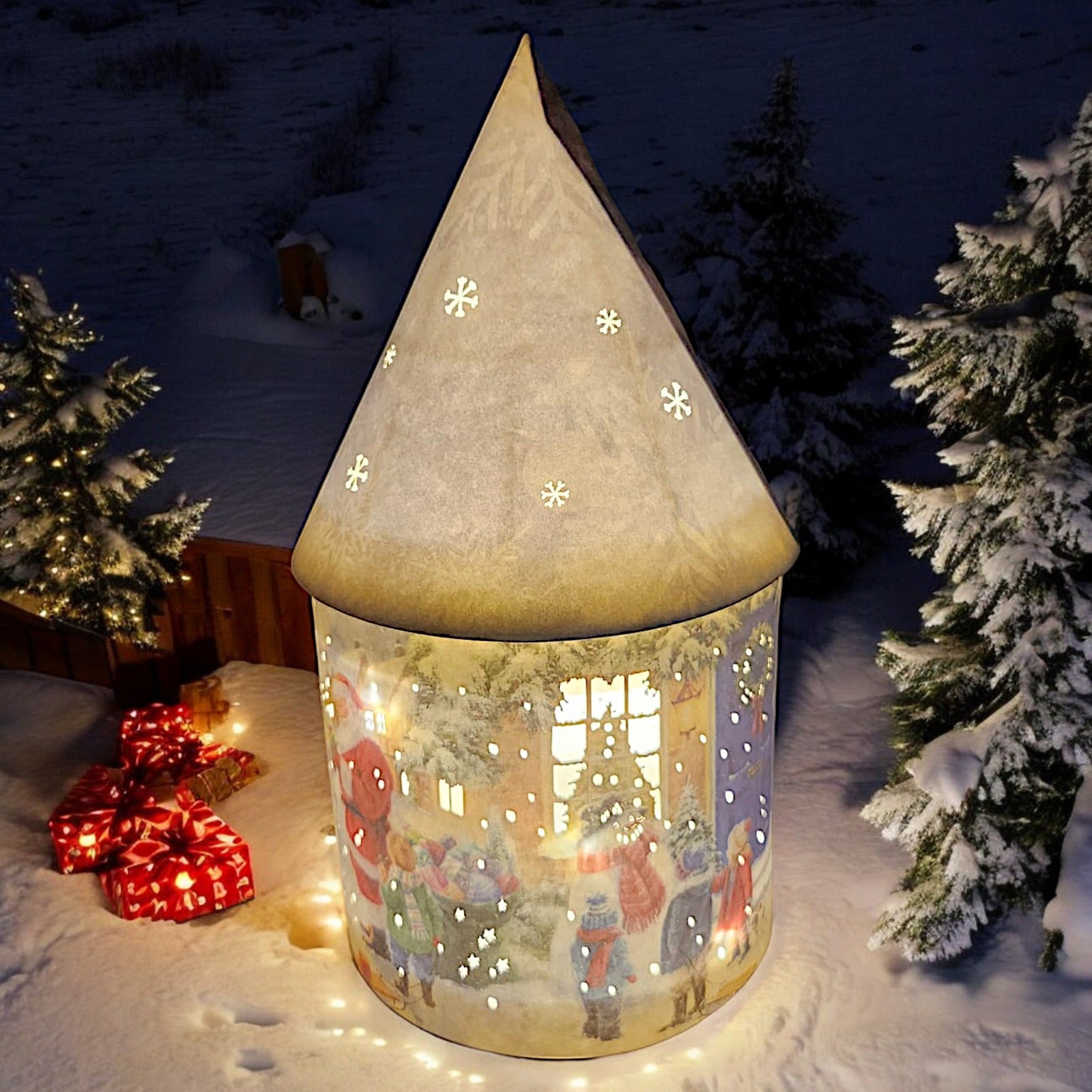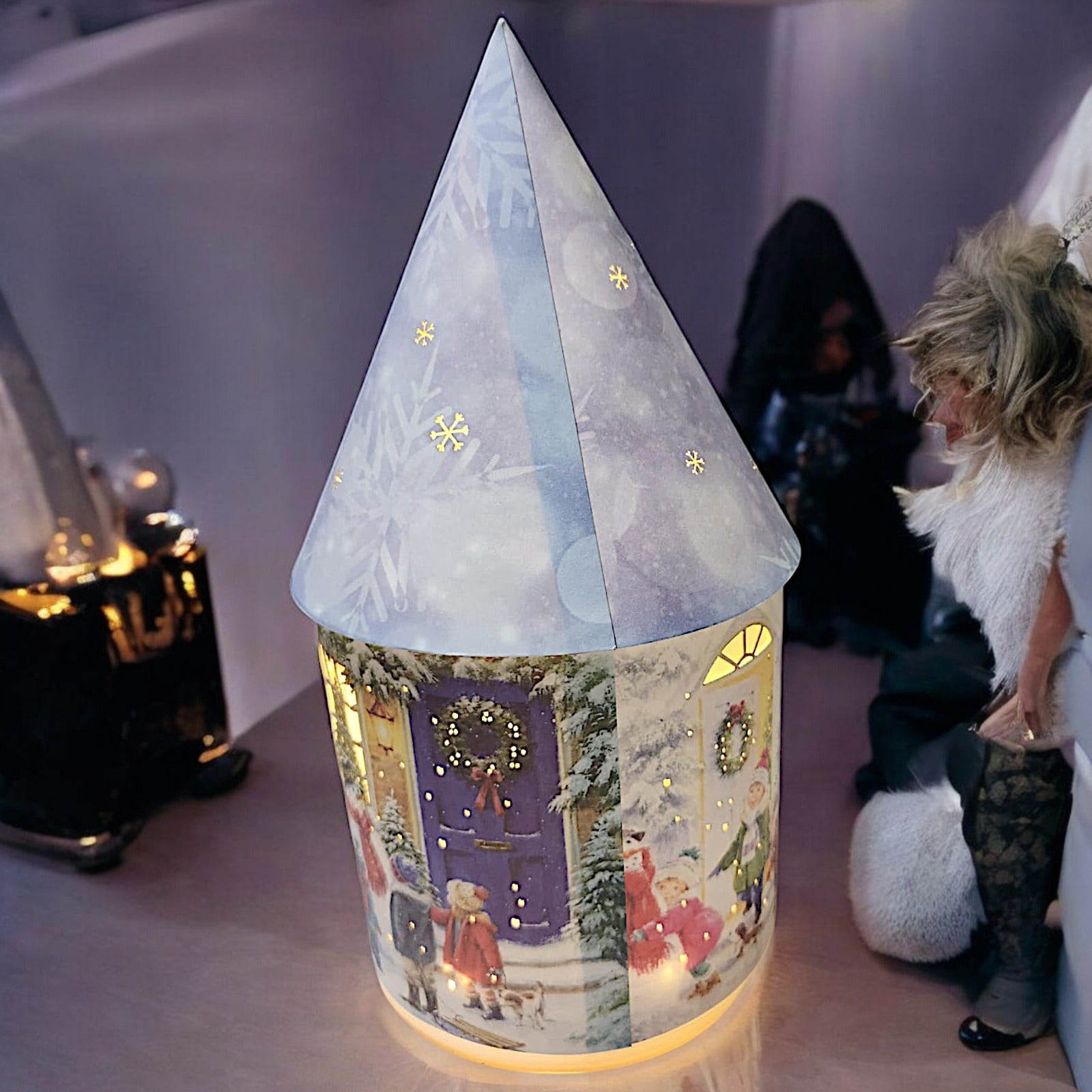 - Create a magical atmosphere: This charming Christmas lantern features a whimsical winter village scene, illuminated by warm, LED lights.
