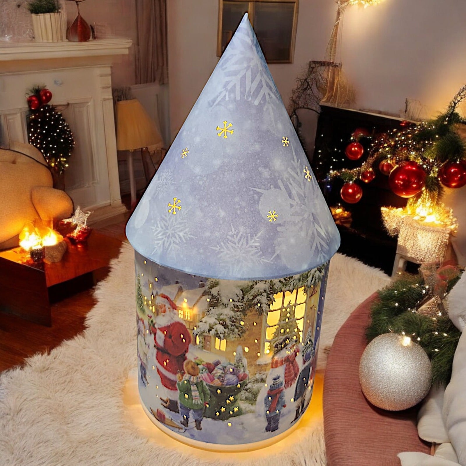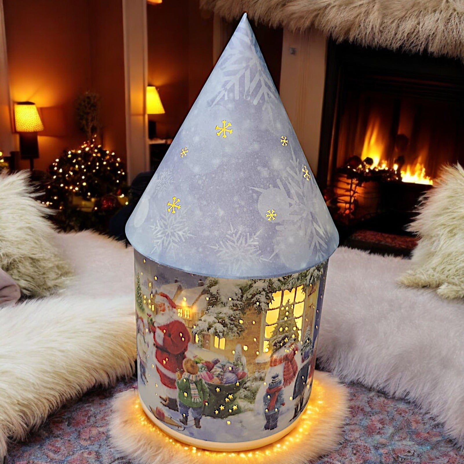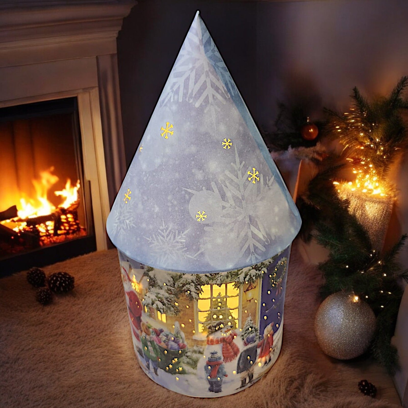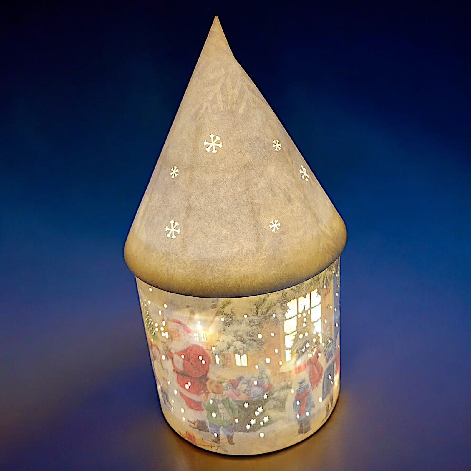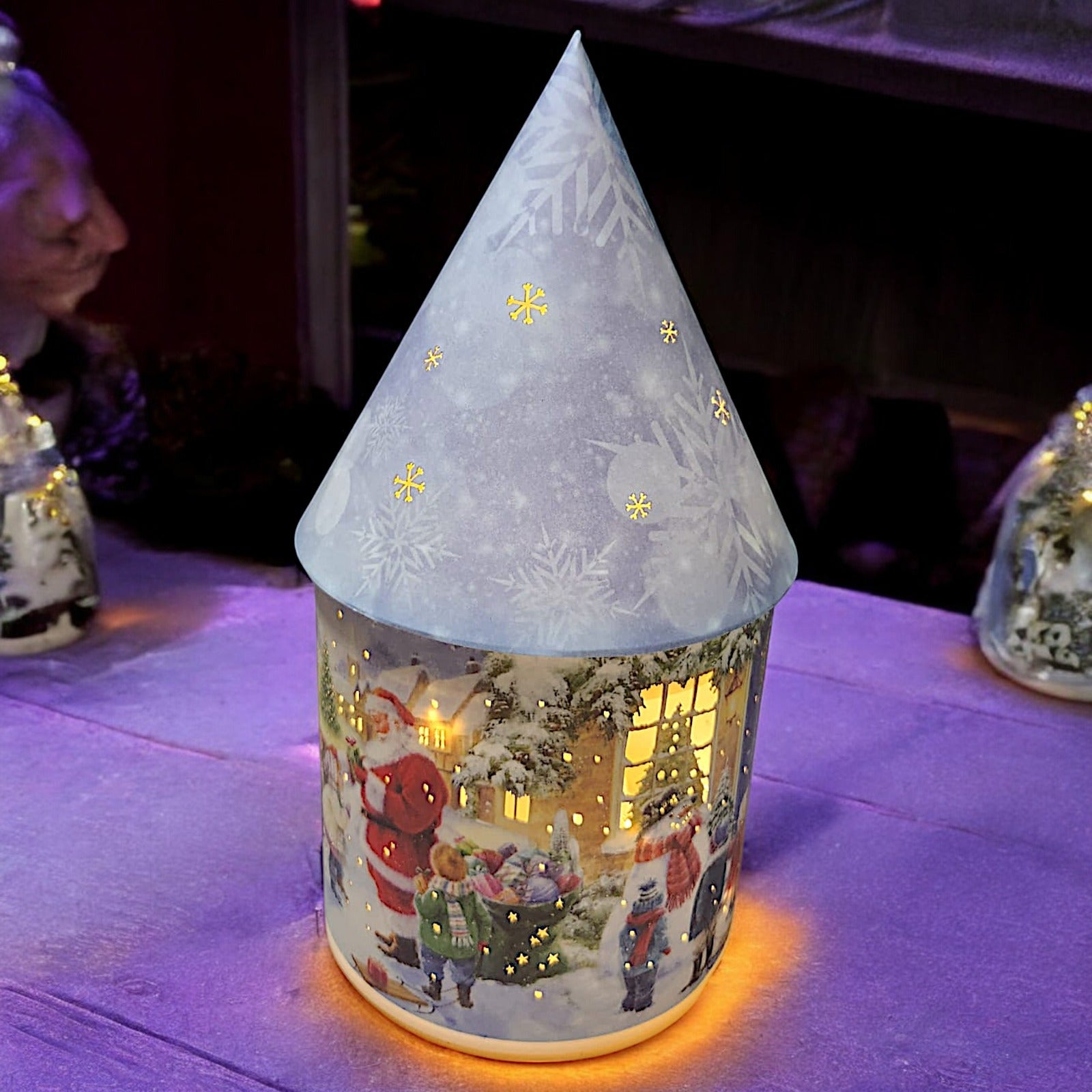 - Create a magical atmosphere: This charming Christmas lantern features a whimsical winter village scene, illuminated by warm, LED lights.